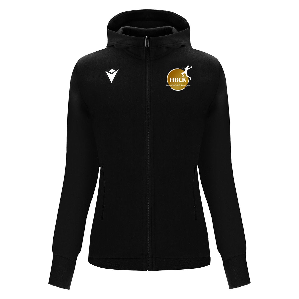 Veste à capuche femme DRUM Macron, noir, logo club inclus.