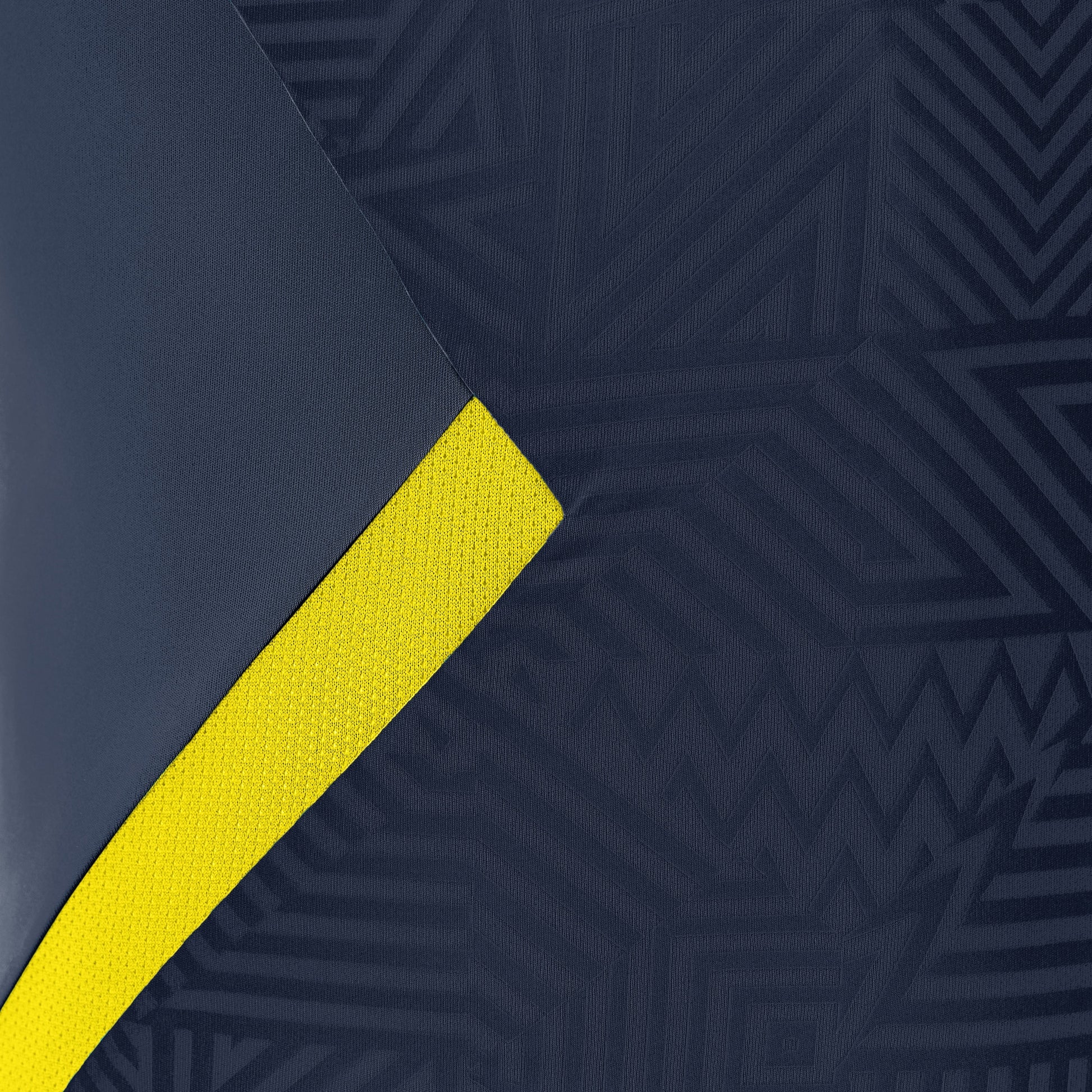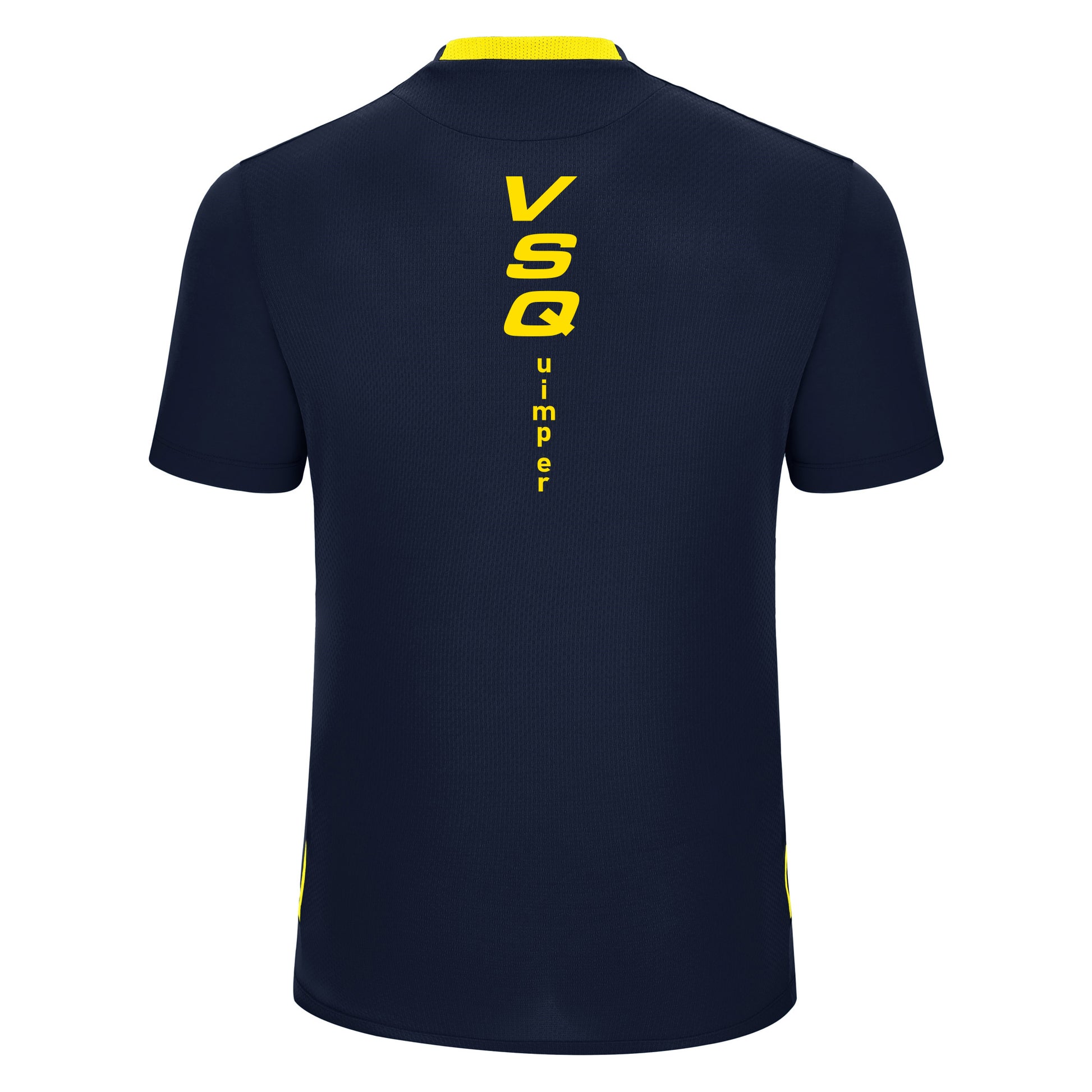 Maillot SHEDIR Macron, bleu marine et jaune, logo club et dos inclus.