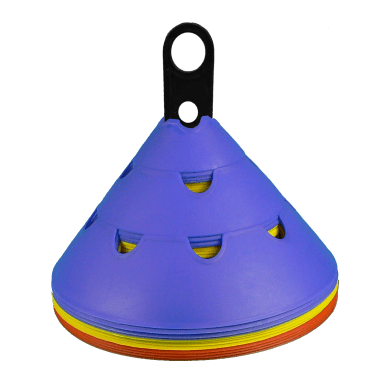 Ce set est composé de 12 multimarqueurs de 3 couleurs différentes (rouge, jaune et bleu). Livré avec son support pour le transport et le rangement. De diamètre 30cm et de hauteur 16cm, ce multimarqueurs est aussi équipé d'encoches permettant d'y apposer des jalons de 3 hauteurs différentes (5, 10 et 15cm).