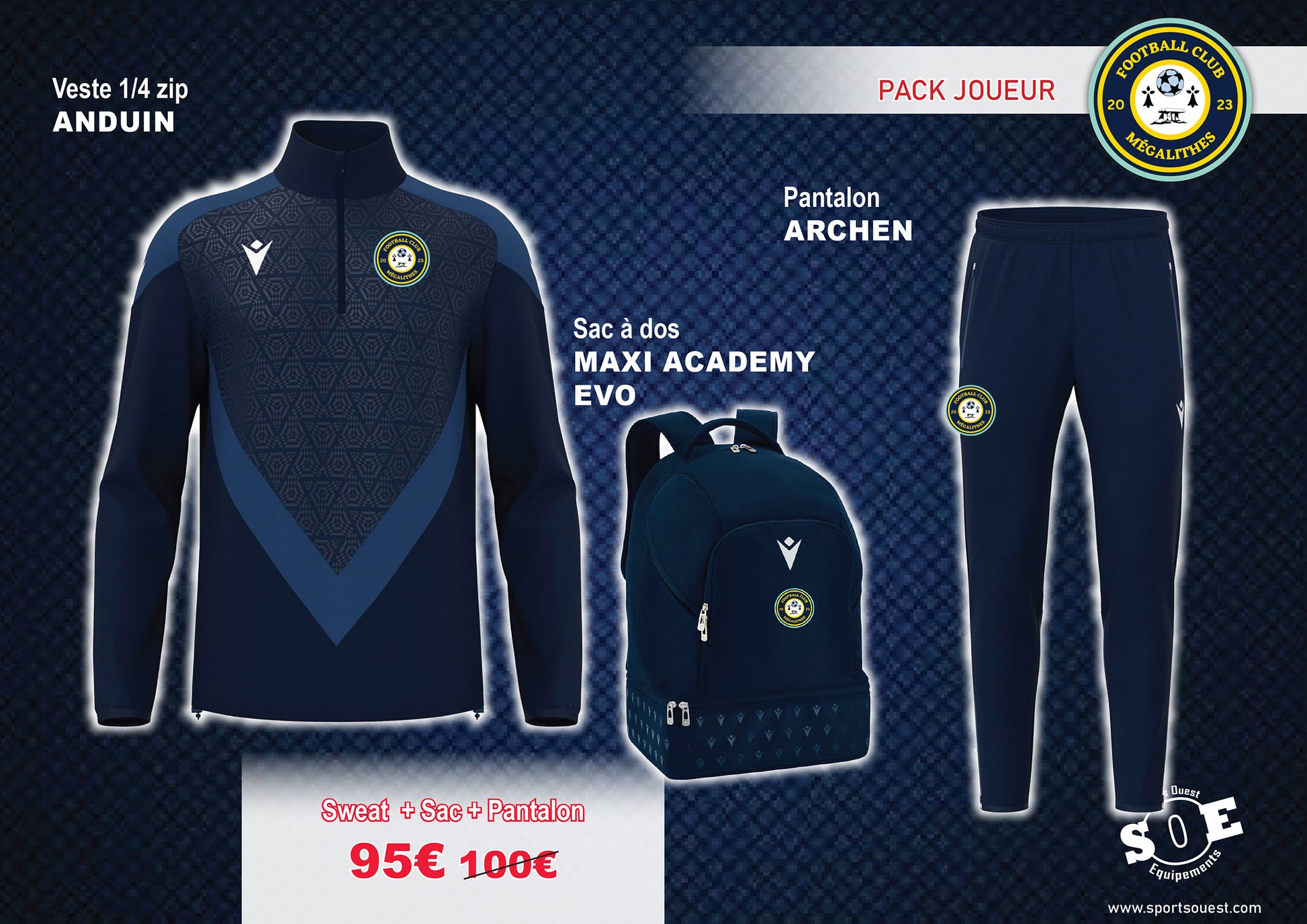 - Un pantalon ARCHEN Macron, bleu marine, logo club inclus un sac à dos MAXI ACDEMY EVO Macron, bleu marine logo club inclus