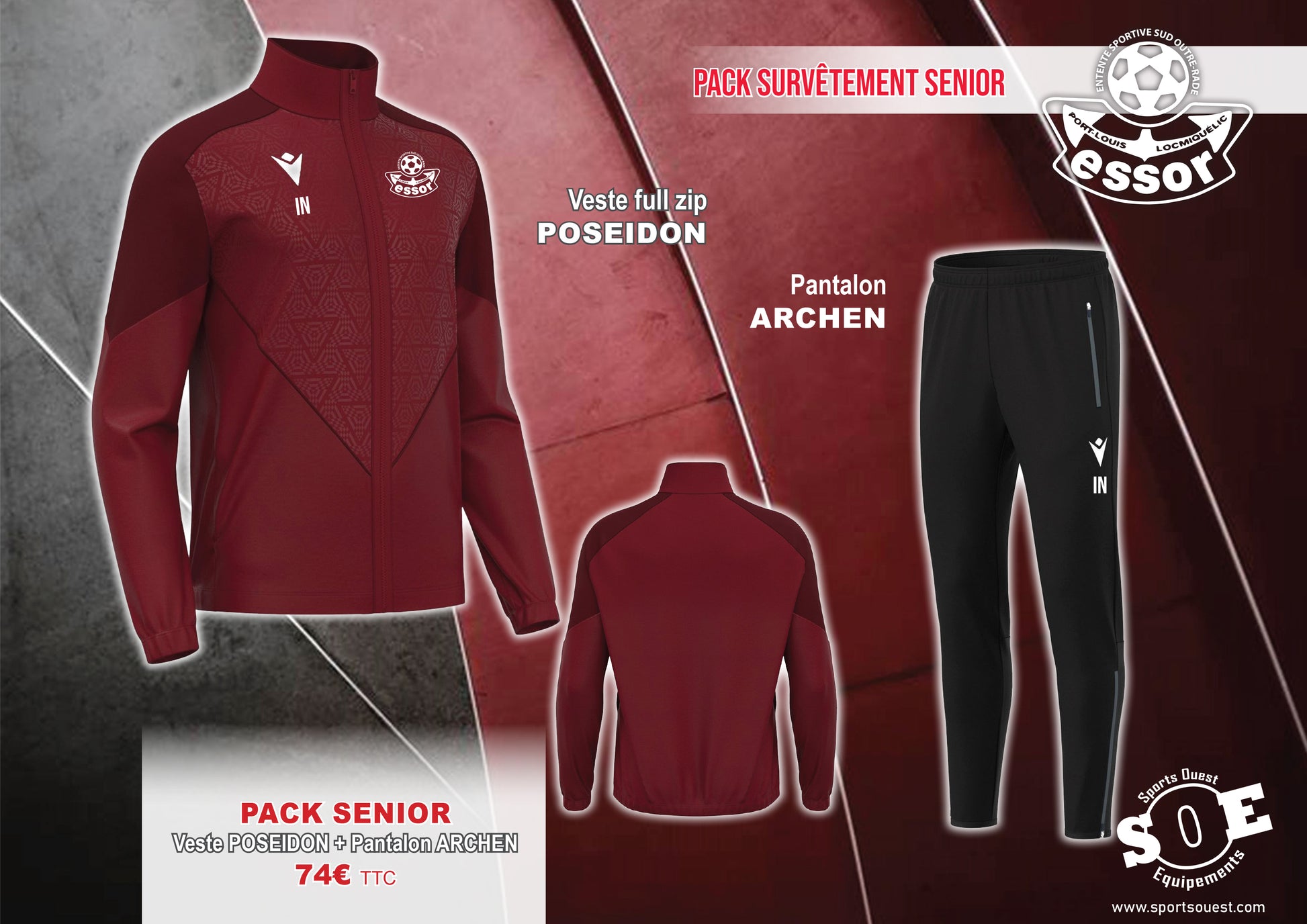 - une veste POSEIDON Macron, grenat, logo club inclus