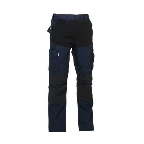 Pantalon multi-poches avec parties extensibles dans les 4 sens à l'entrejambe et aux genoux. 2 poches latérales. 1 poche téléphone. 2 poches sur les cuisses avec poches sur les jambes. 1 poche à mètre. 1 poche stylos. 2 poches arrière. Poches aux genoux en renfort Cordura®. 1 porte-badge. 1 boucle pour marteau. Ourlet à rallonge. Bouton recouvert.