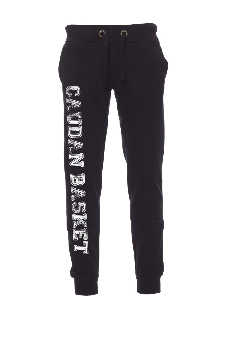 Pantalon en sweat pour homme avec bord côtes élastique à la taille et au bas des jambes, coulisse avec cordon blanc à coutures en contraste et anneaux en métal, deux poches sur le devant avec bord côtes et une petite poche arrière, zip avec patte et coutures renforcées.