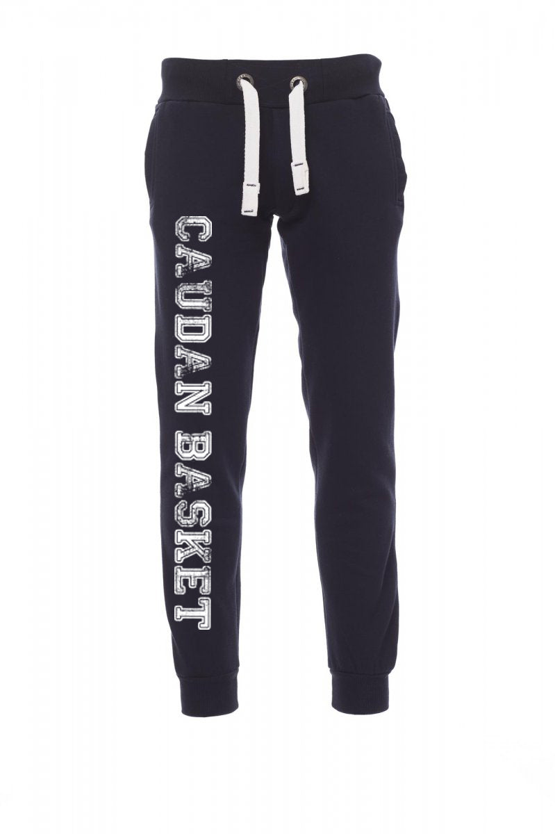 Pantalon en sweat pour homme avec bord côtes élastique à la taille et au bas des jambes, coulisse avec cordon blanc à coutures en contraste et anneaux en métal, deux poches sur le devant avec bord côtes et une petite poche arrière, zip avec patte et coutures renforcées.