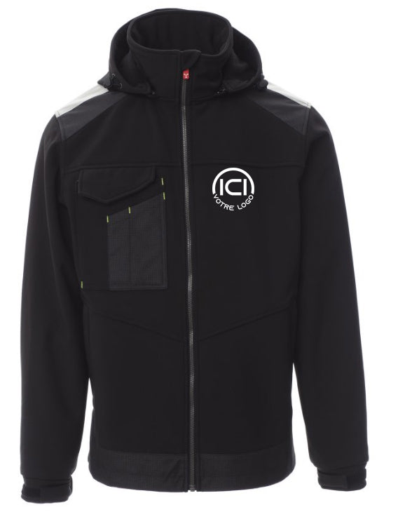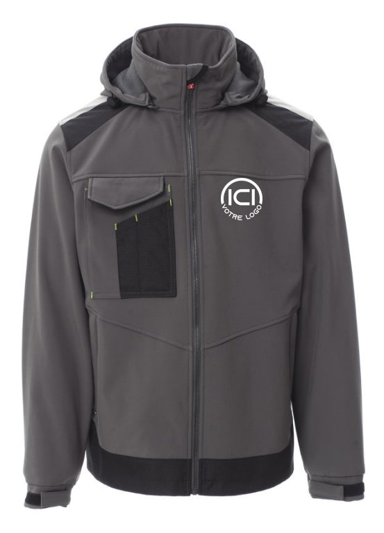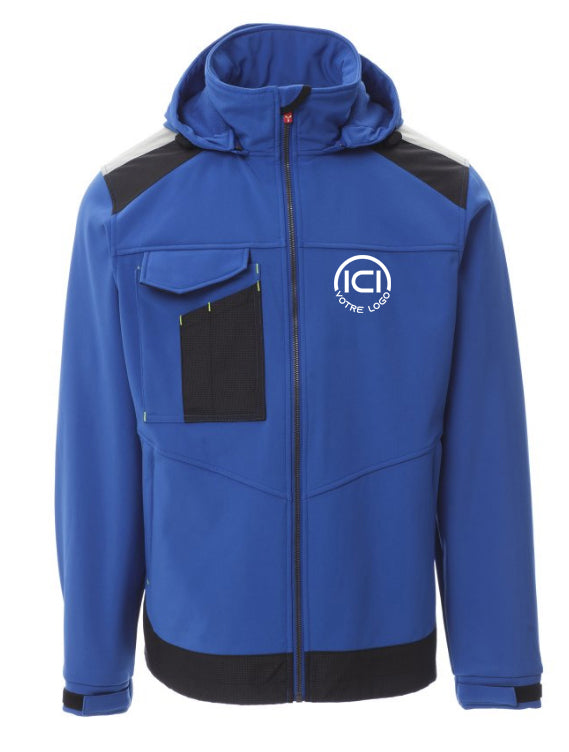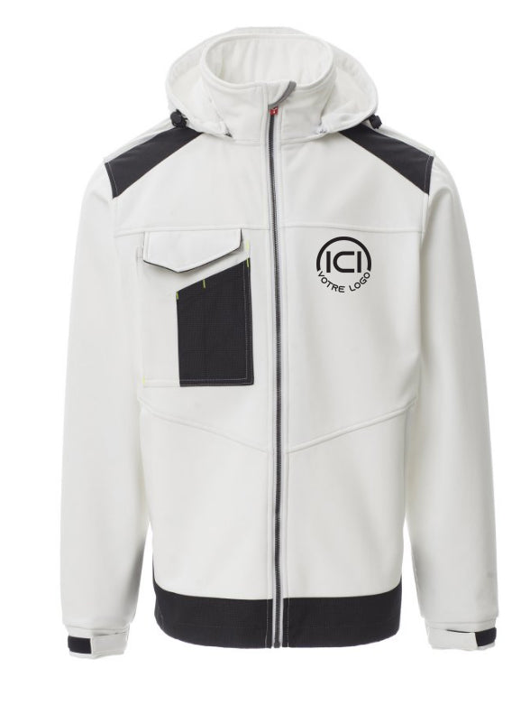 WP/MM 8000 MVP/GR 5000 veste pour homme coupe ergonomique, manches montées, fermeture éclair entière SBS en plastique avec curseur en métal « auto lock », deux poches latérales à fermeture éclair, une poche poitrine multifonction avec porte badge invisible et rabat de fermeture LOCK SYSTEM, passepoils réfléchissants 3M aux épaules, élastique et serre poignet en velcro, capuche amovible avec coulisse en élastique réglable à butée.