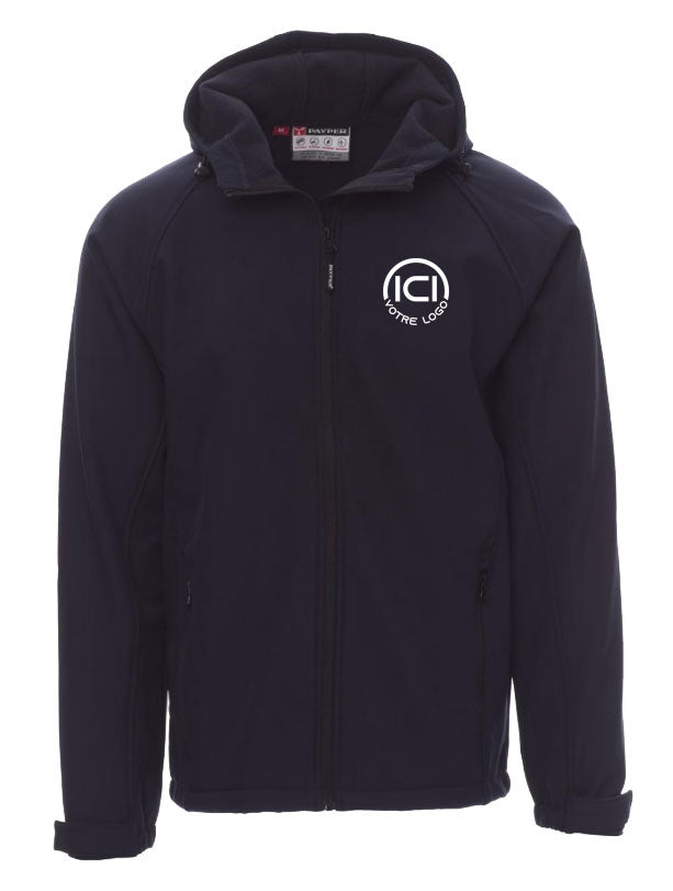 WP 8000 mm H₂O, WVT 5000 g/m² 24h. Veste ergonomique homme, manches raglan, capuche profilée à deux coutures et coulisse, fermeture éclair longue avec ruban, élastique et serre-poignet en velcro, deux poches externes zippées.