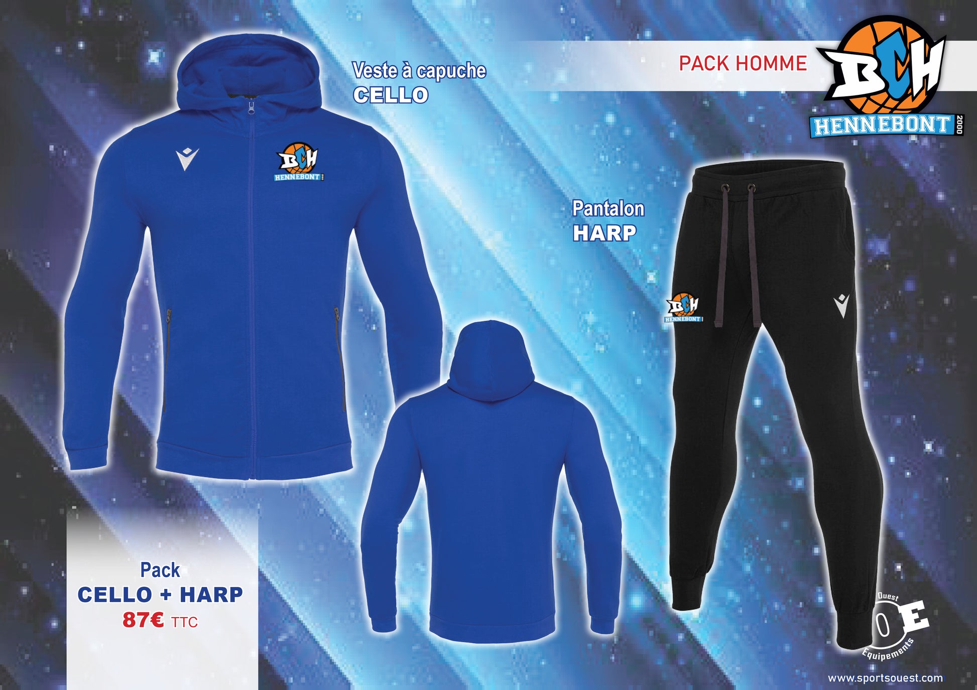 Survêtement CELLO royal et HARP noir Macron, logo club inclus.