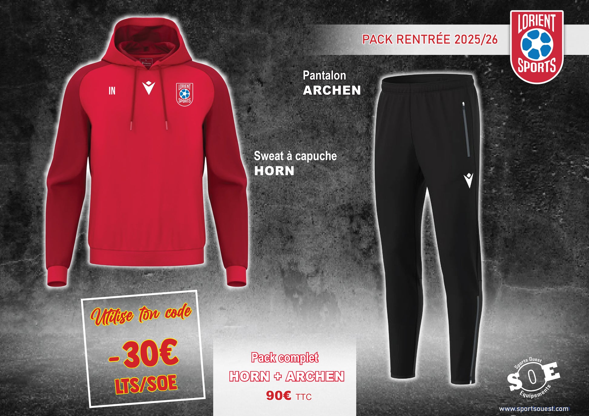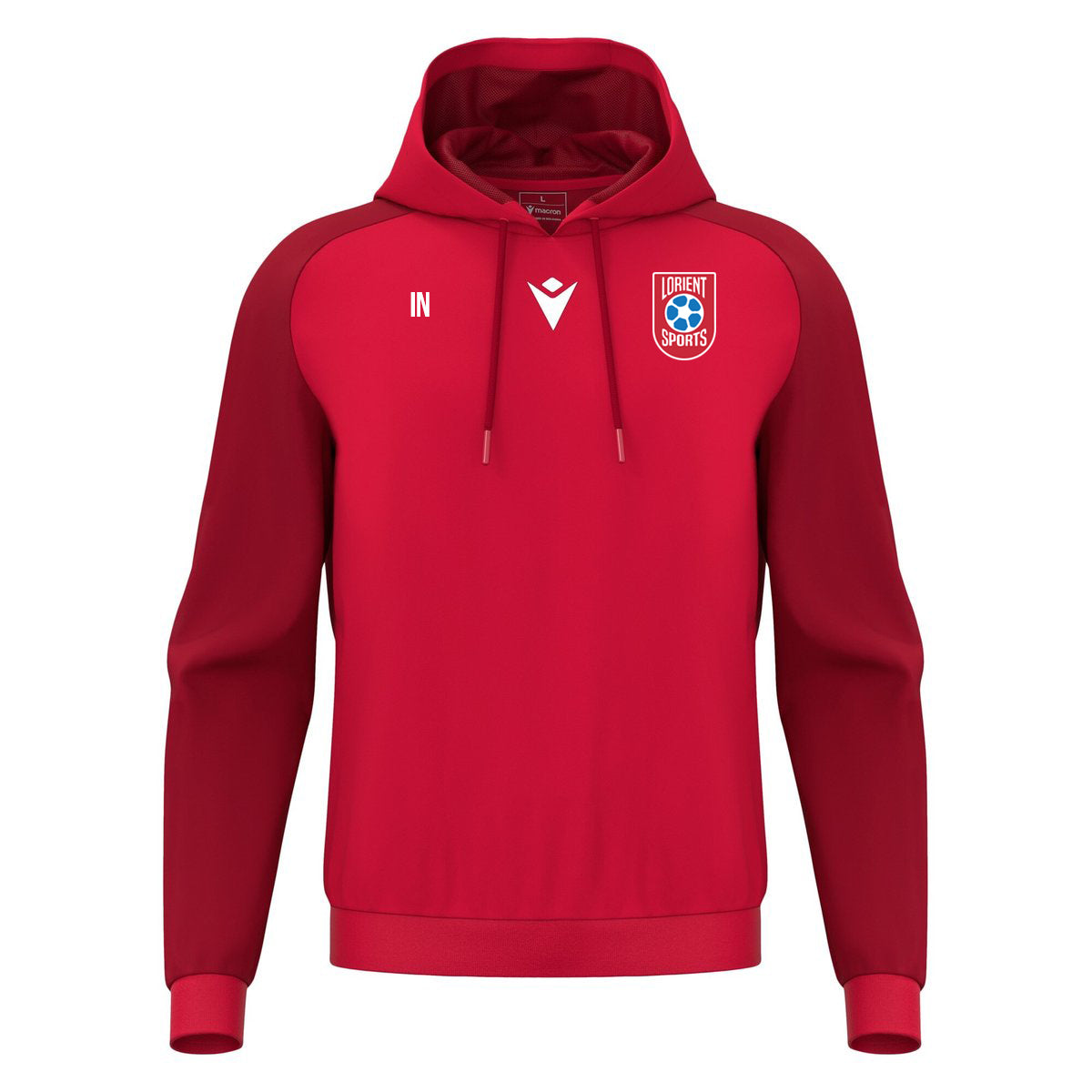 - un sweat à capuche HORN Macron, rouge logo club inclus