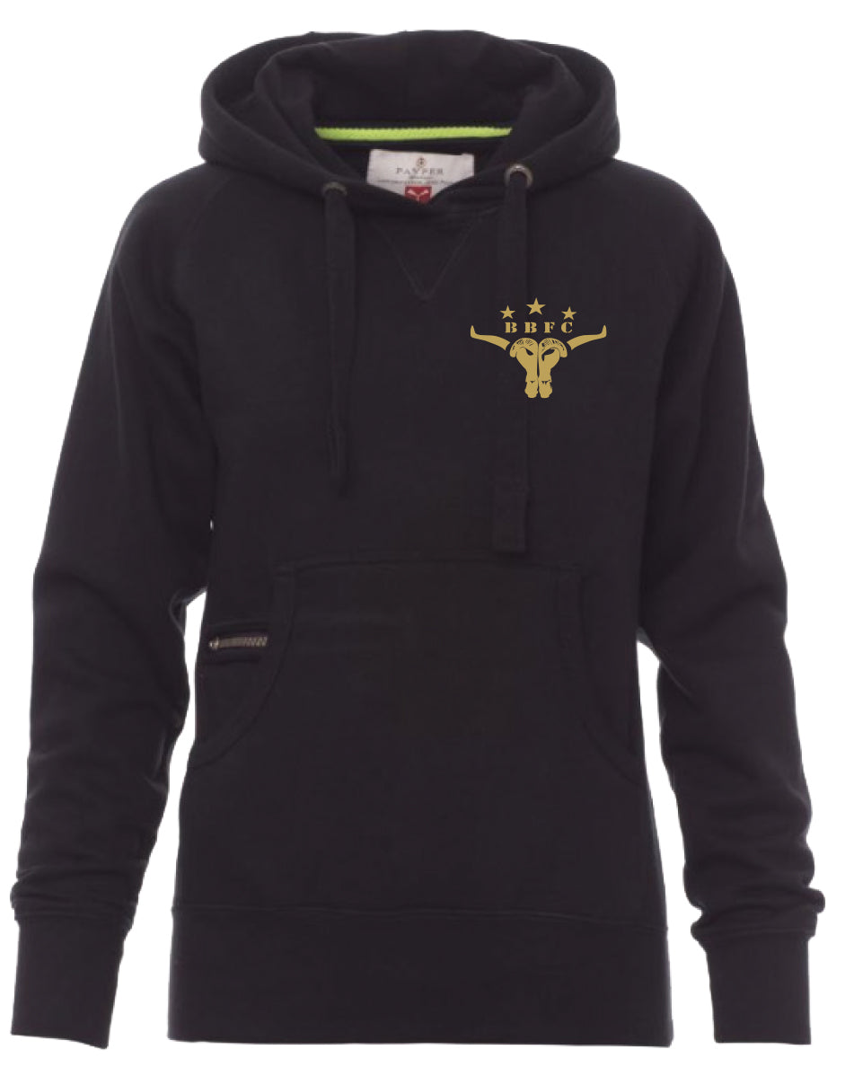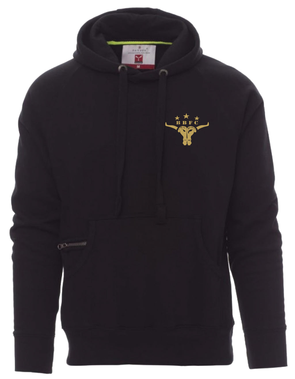 Sweat-shirt homme ou femme ATLANTA+ Payper, noir, logo coeur et dos inclus.