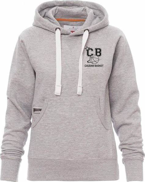 Sweat-shirt femme, coupe cintrée, avec capuche à deux coutures et coulisse en cordon blanc avec coutures teinte assortie et anneaux en métal . Manches raglan, couture esthétique en V au col, poches kangourou, petite poche à zip, poignets et taille en côtes élastiques, coutures renforcées. Gris chiné ou Noir.