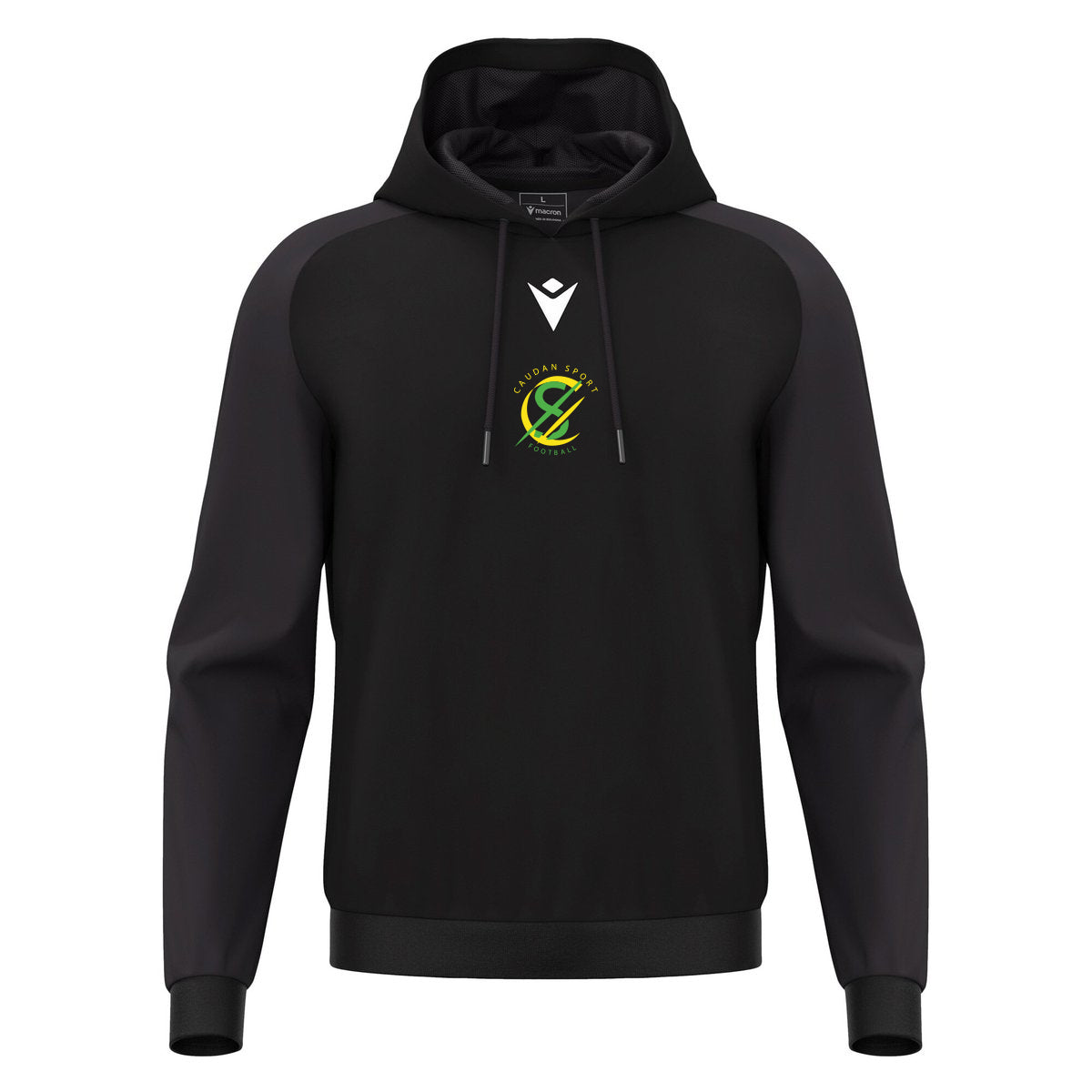 Sweat à capuche HORN Macron, noir, logo club inclus.