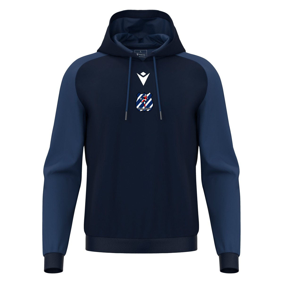 Sweat à capuche HORN Macron, marine, logo club inclus.