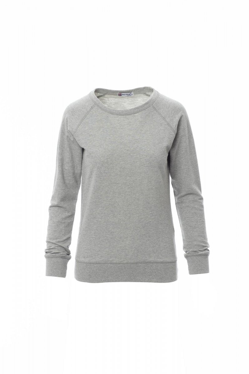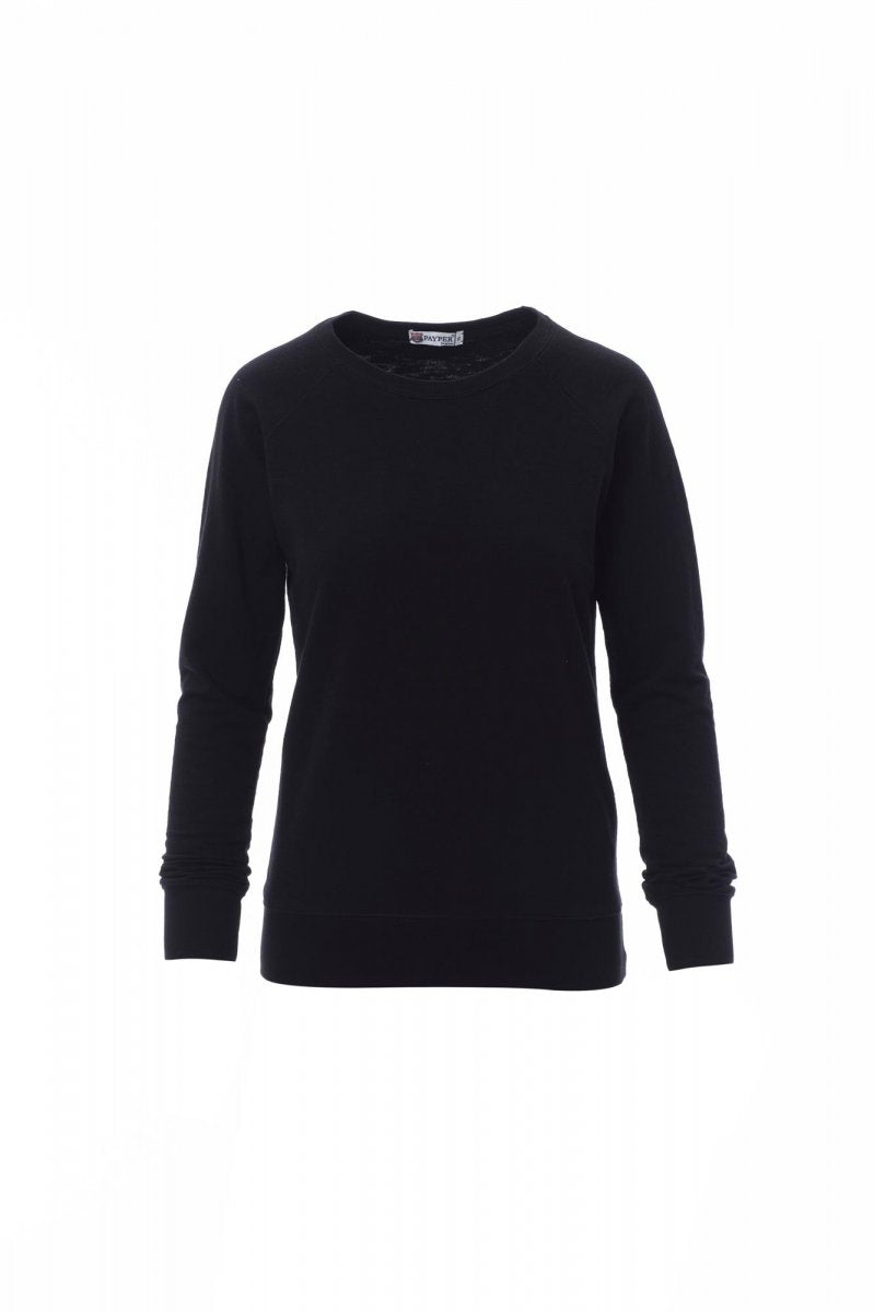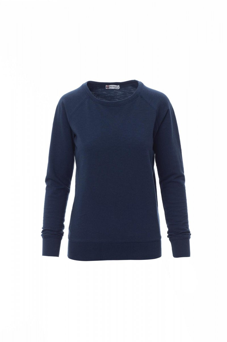 Sweat-shirt femme, encolure bateau à bord vif, manches raglan, poignets et taille en bord à côtes élastifié, coutures renforcées.