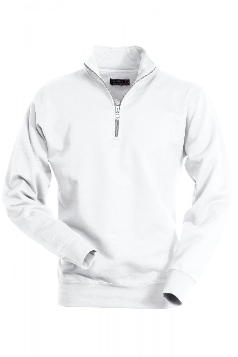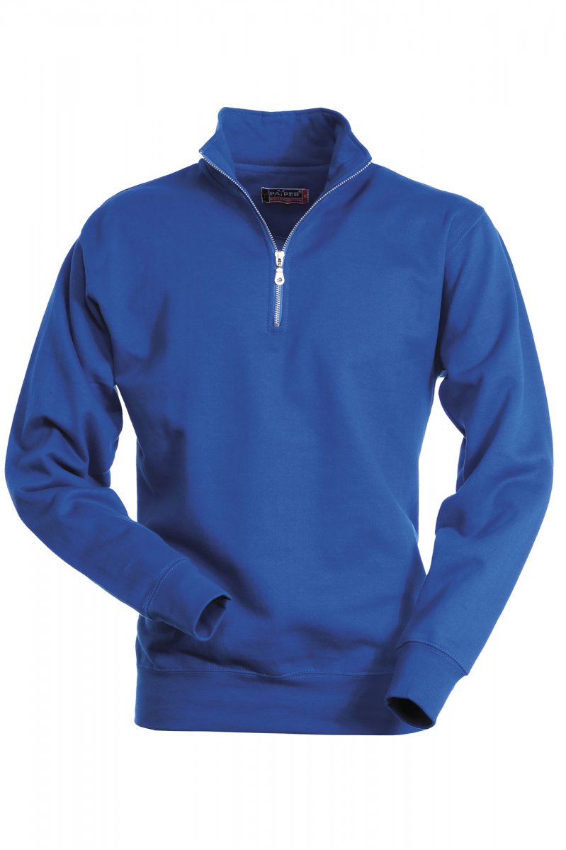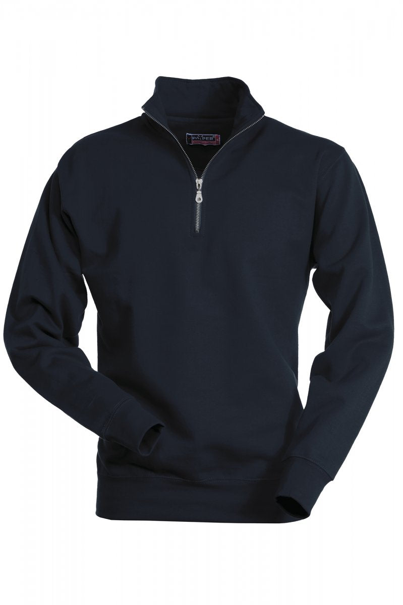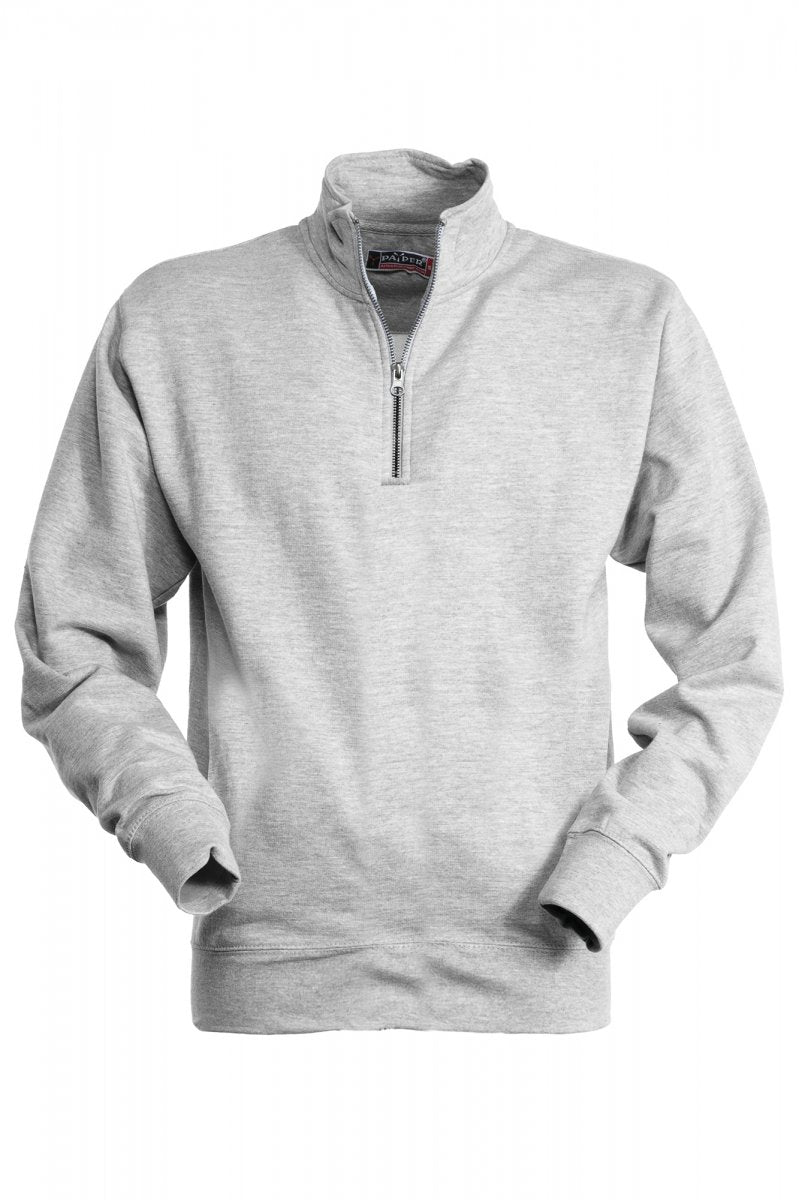 Sweat-shirt à demi Zip de métal, poignets et taille en bord côte élastique, double couture au col, aux manches et sur la taille et ruban de renfort au col.