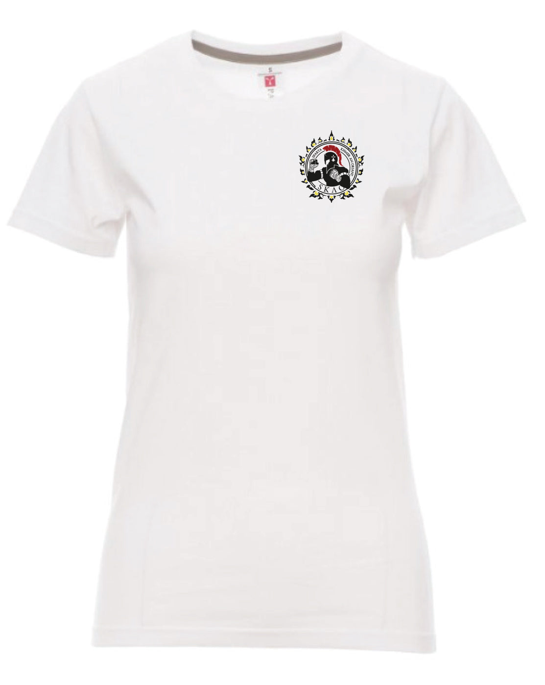 Encolure ras le cou et manches courtes, col en bord côtes mixte spandex de 1,5 cm avec couture rabattue sur le devant, ruban de renfort d'épaule à épaule dans couleur en contraste sur le col, coutures stretch, structure tubulaire - Poids : 150 GR/MQ